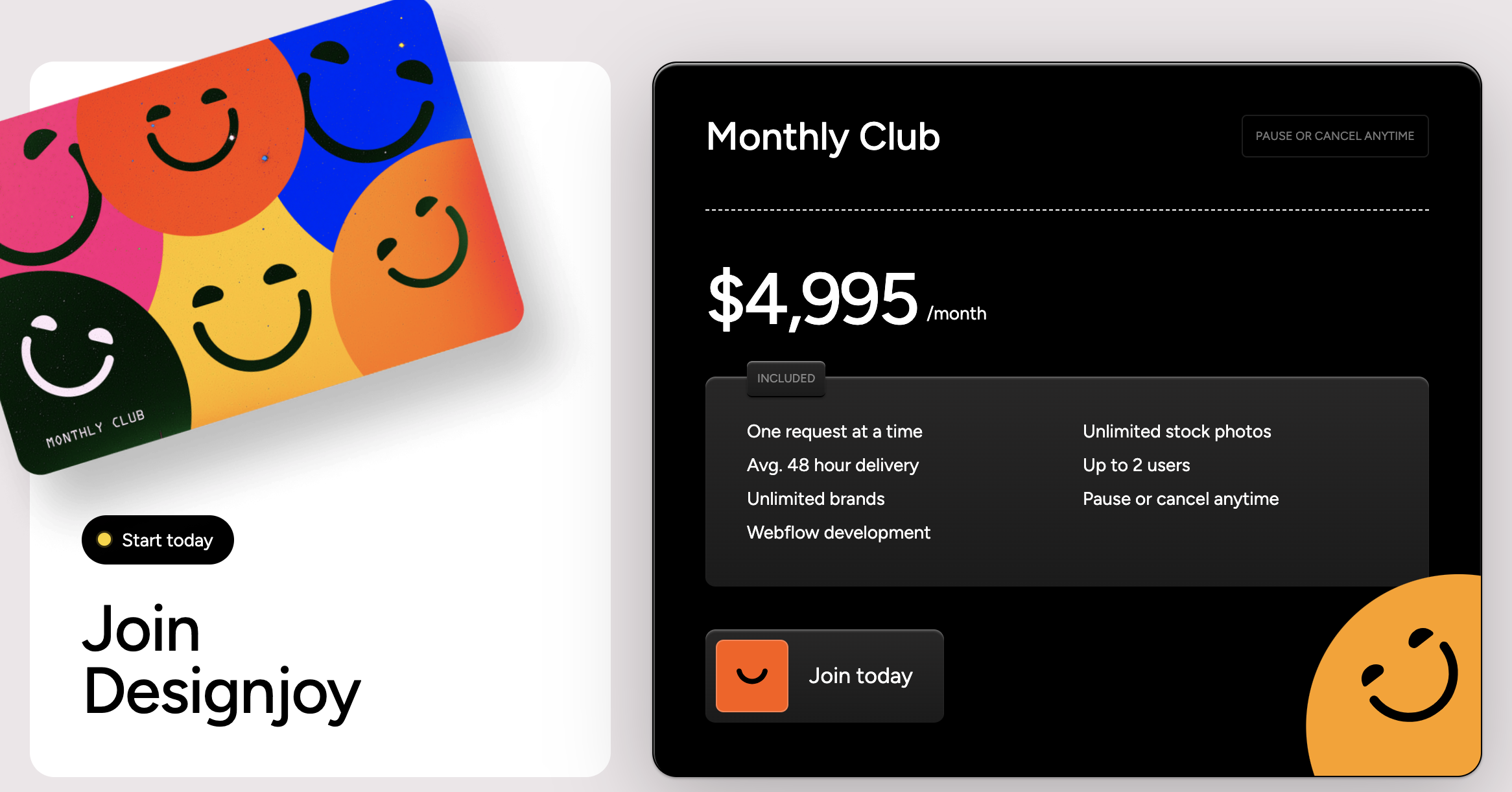 브렛의 또 다른 성공 요인은 바로 구독 기반 수익 모델이었습니다. 일반적으로 디자이너들은 프로젝트 단위로 고객과 계약을 맺습니다. 하지만 이런 방식은 수익의 변동이 심하고, 늘 새로운 고객을 찾아야 한다는 압박감이 있죠.