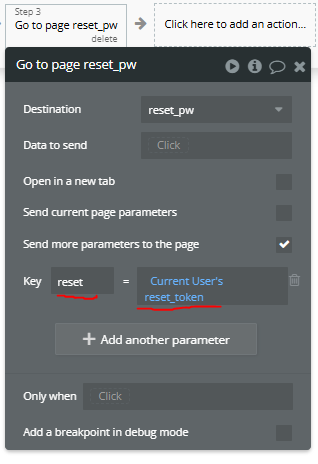 *여기서 첫번째 워크플로우인 send reset email 에서 부여받은 토큰을 그대로 활용하면